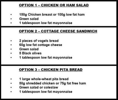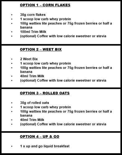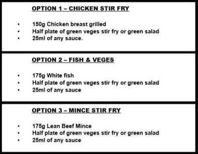 (These options are just an example of the types of foods on the plan. The amounts will vary drastically based on your tailored weight category)