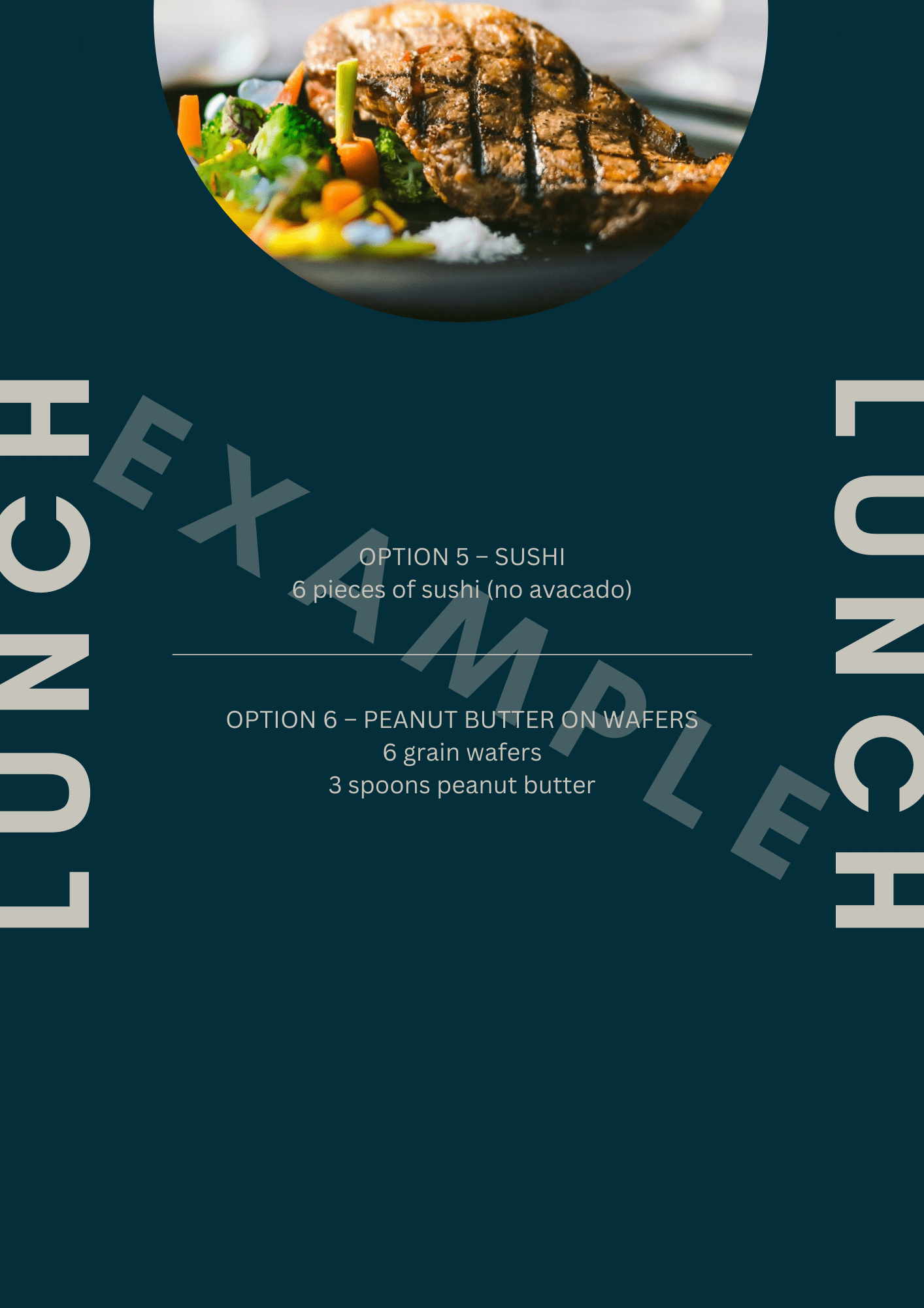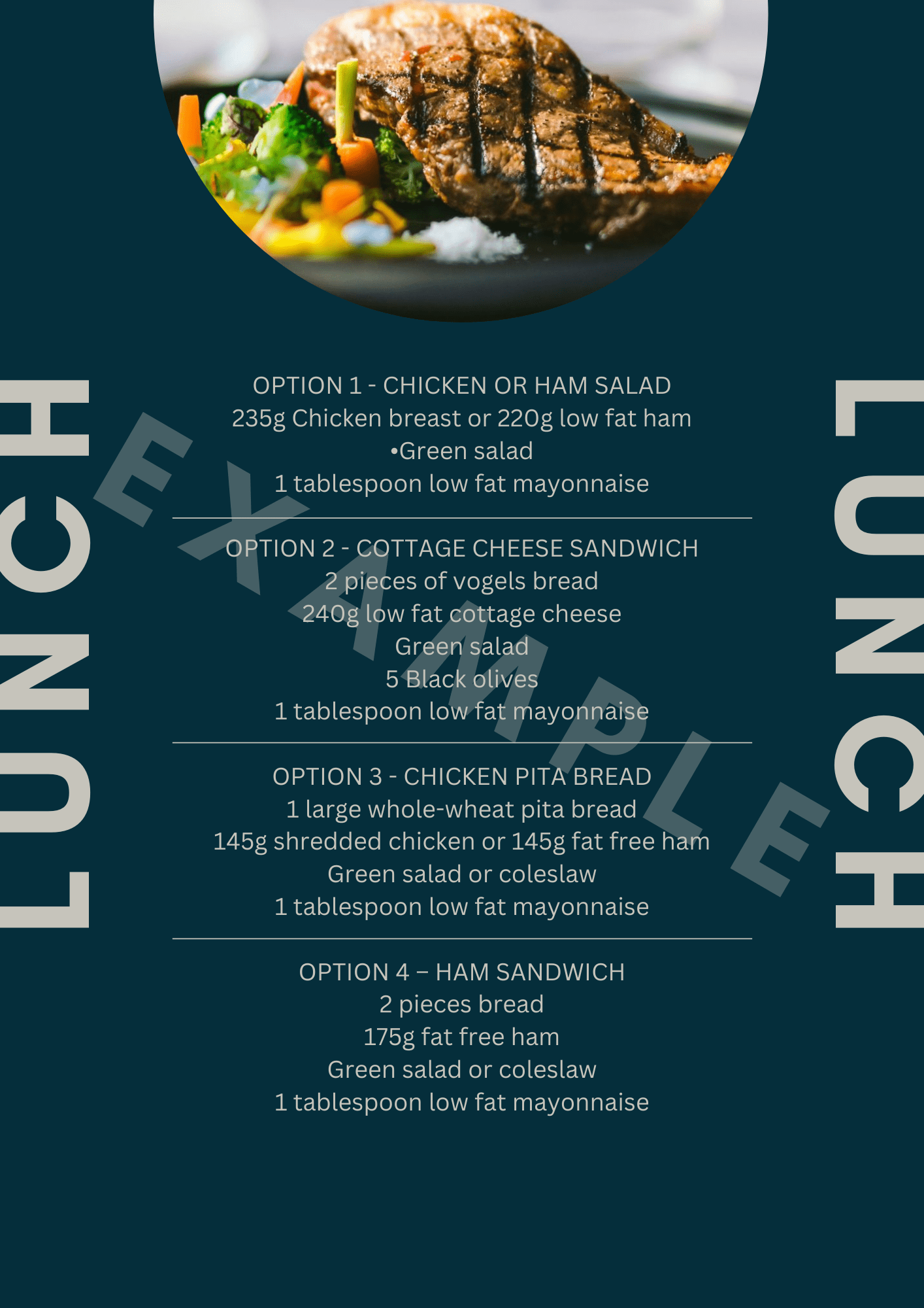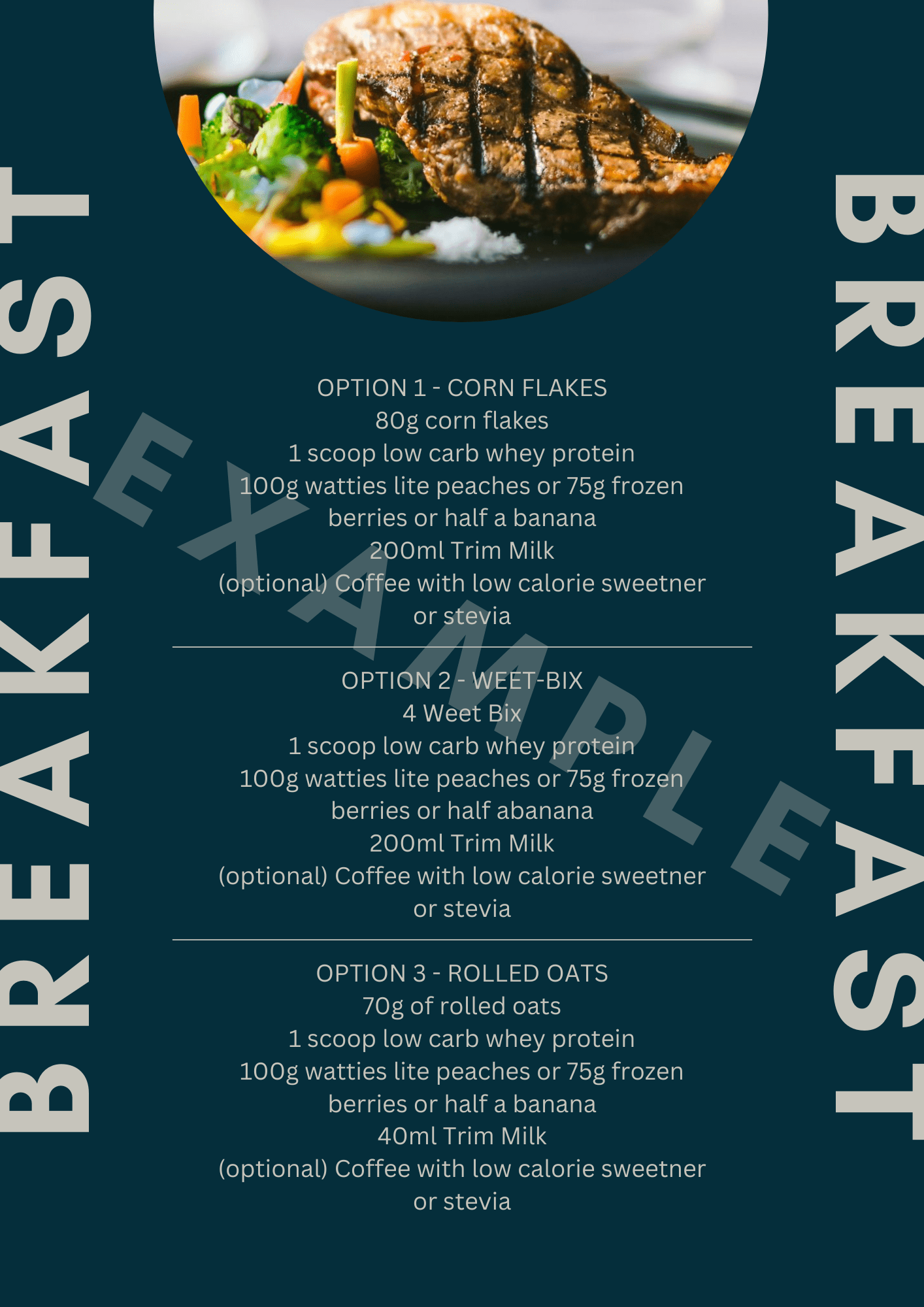 (These options are just an example of the types of foods on the plan. The amounts will vary drastically based on your tailored weight category)