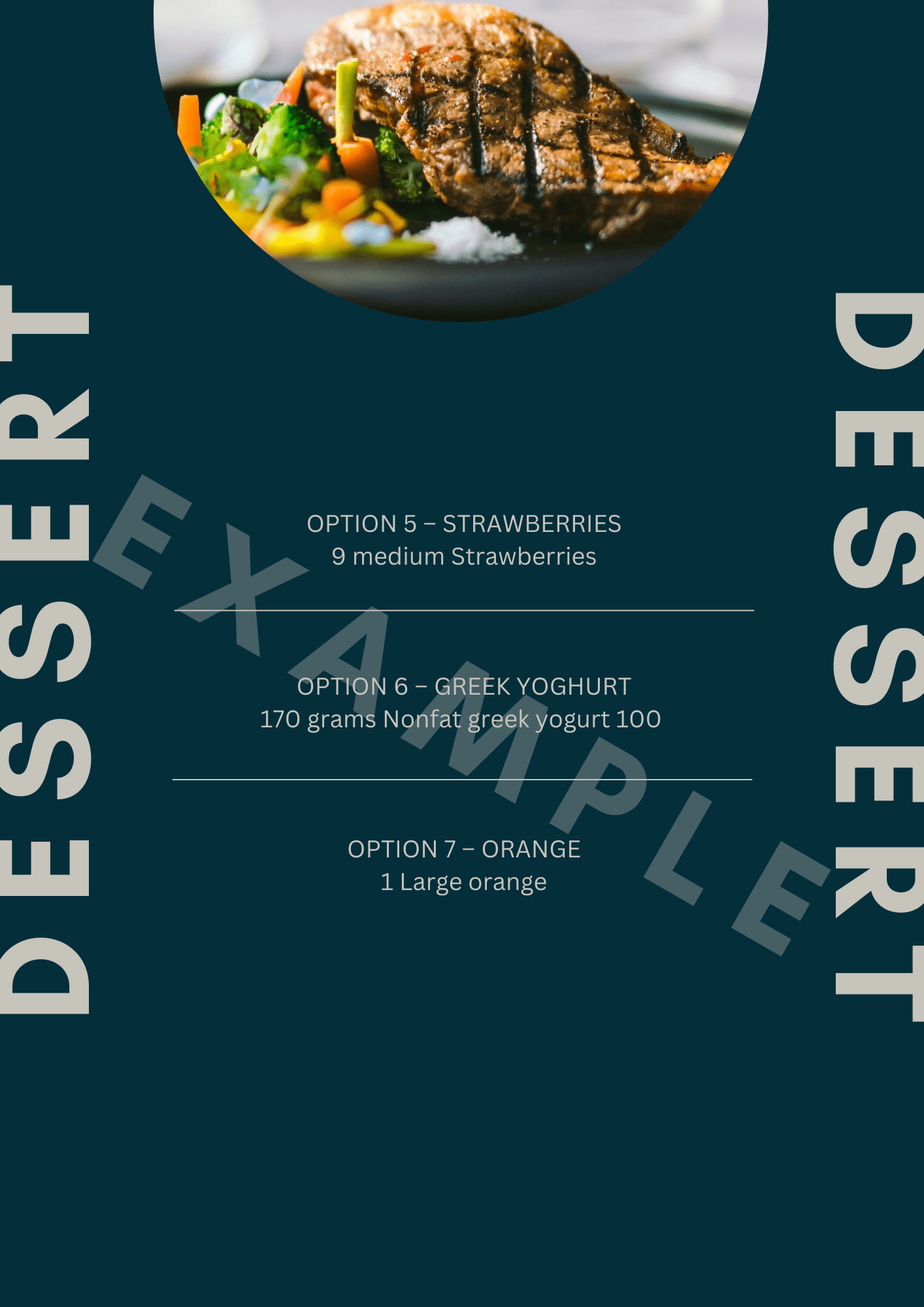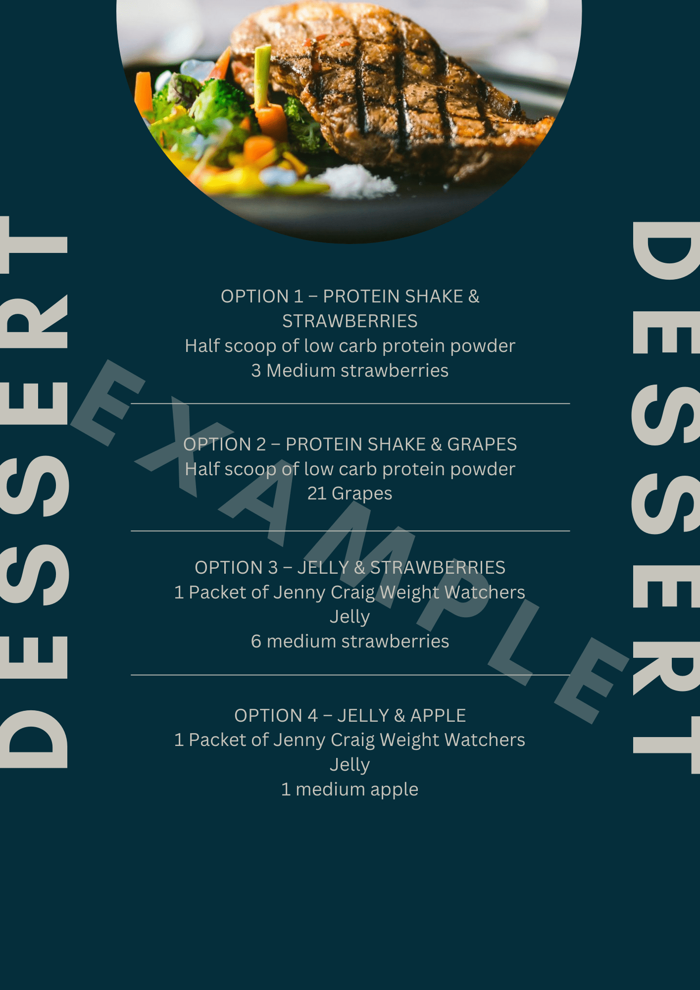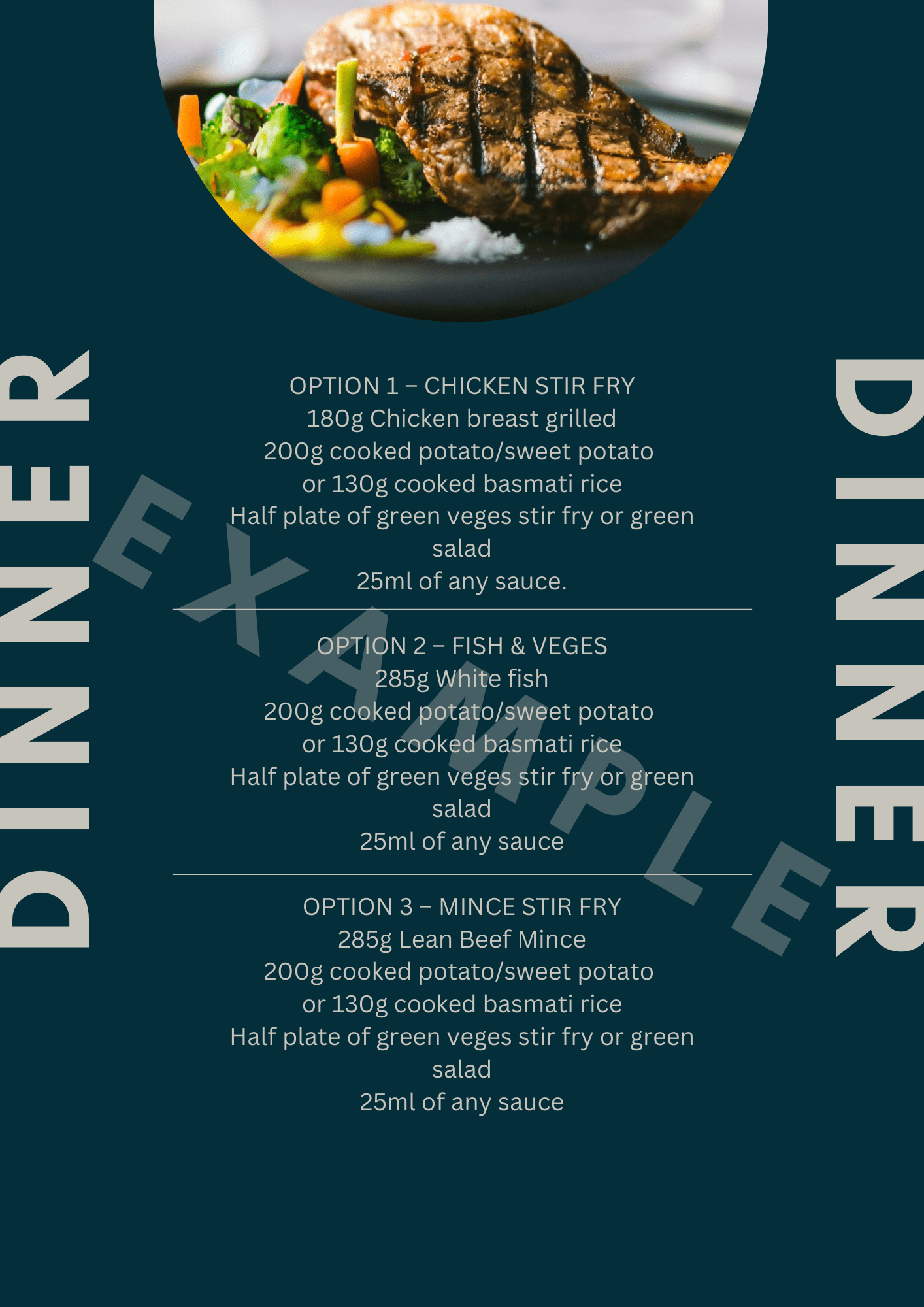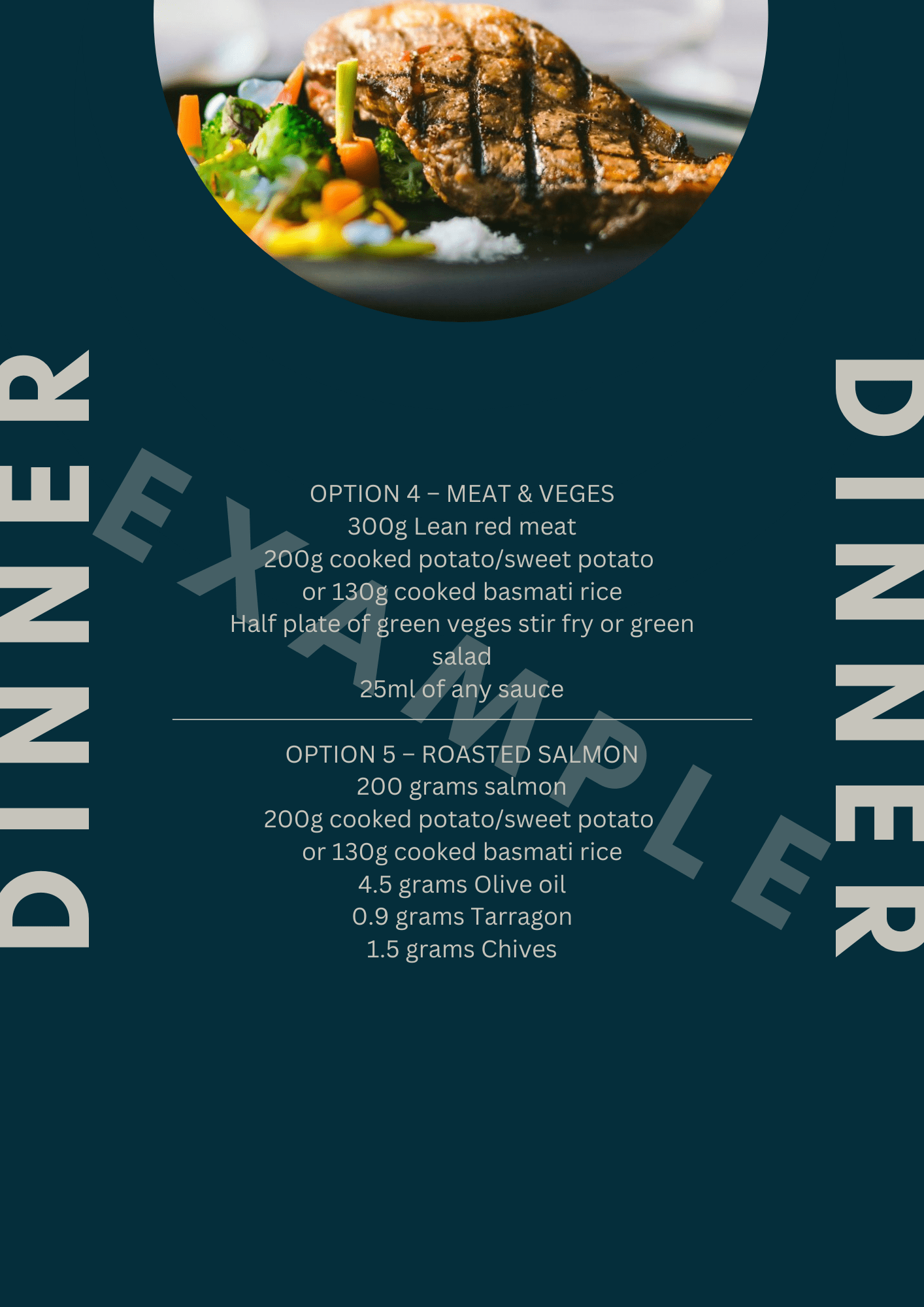 (These options are just an example of the types of foods on the plan. The amounts will vary drastically based on your tailored weight category)