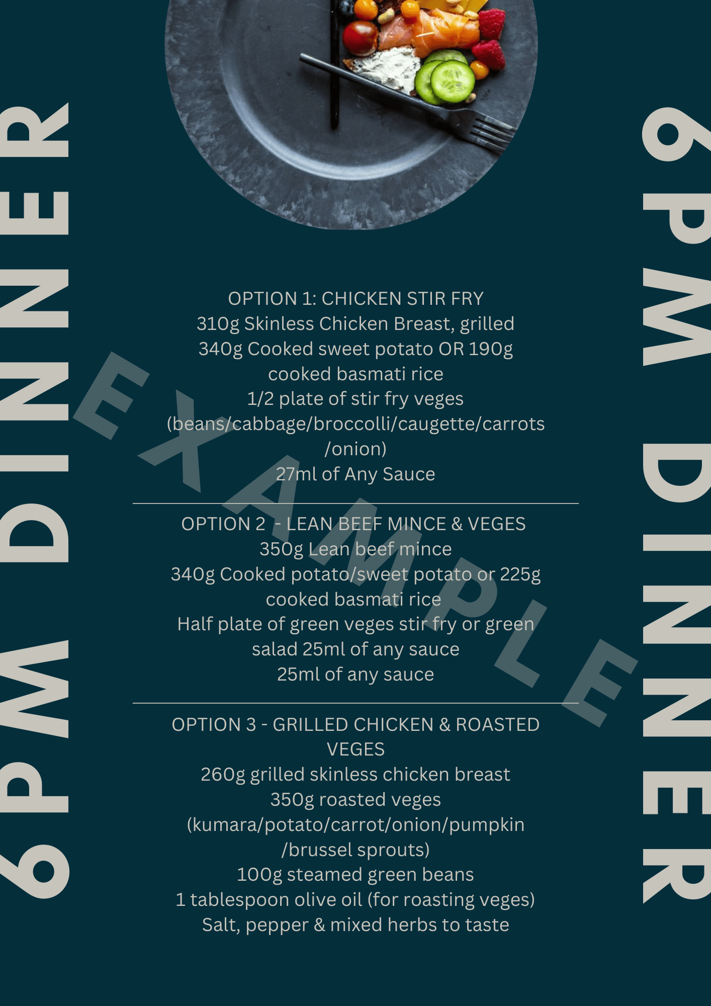- The following examples are just a few of the options provided in the INTERMITTENT FASTING meal plan. The amounts will vary drastically based on your tailored weight category